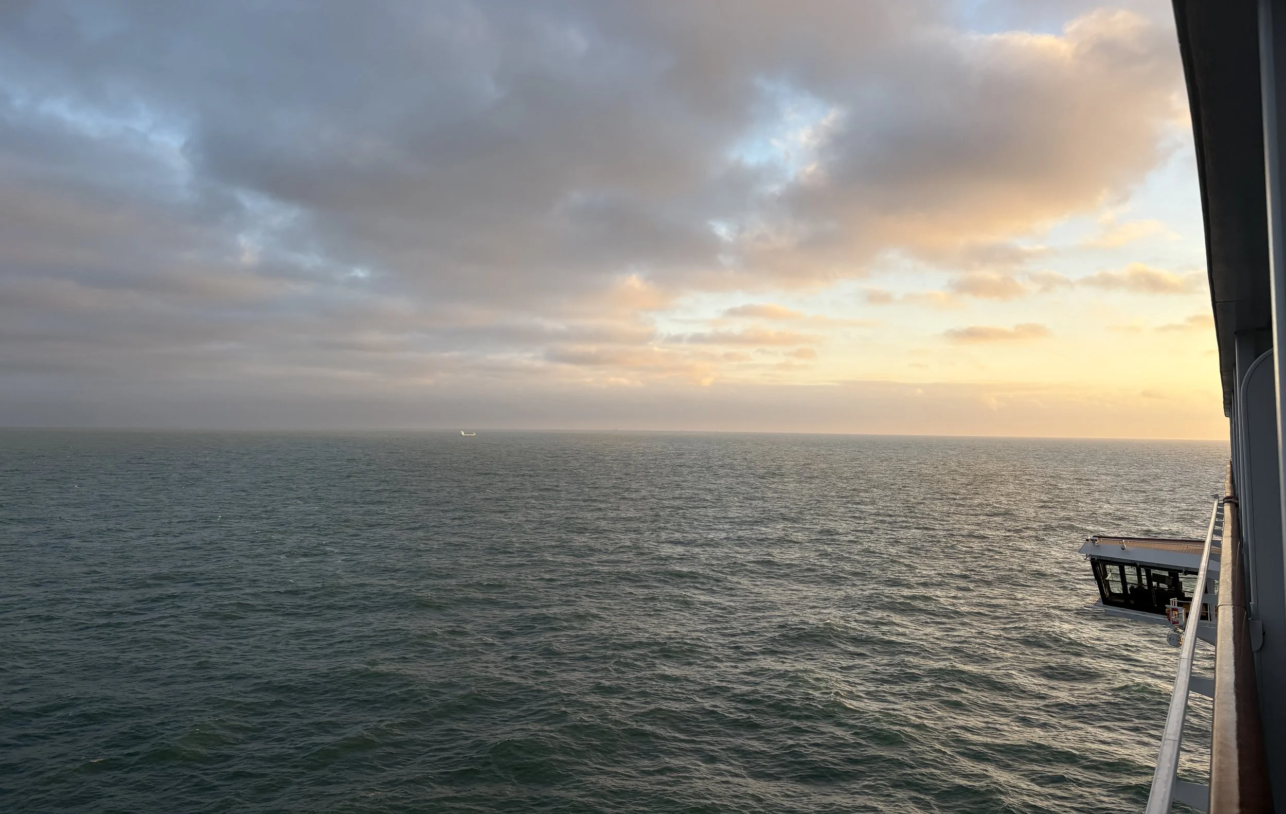Tag 2 auf der MSC Preziosa - um 04:30 MEZ konnten wir endlich in Hamburg Steinwerder ablegen und nach 107 Kilometern (58 Seemeilen) erreichten wir zum Frühstück die Elbmündung und somit die Nordsee - Seetag mit rund 21 Knoten bis Southampton - Wind mit 31 Knoten (6 Beaufort) und mässigem Wellengang - teilweise sonnig.